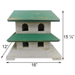 Provide your favorite backyard birds a wealth of seed in the Woodlink Large Combination Thistle and Seed Bird Feeder. This generous feeder not only holds a large amount of seed; it also accommodates both thistle and mixed seed for more birds to dine. One half of the item has a 0.25″ square mesh, perfect for holding 2.5 quarts of sunflower seed or peanut splits. Birds can easily cling onto this mesh, reaching the seed for a fantastic snack. The second half has a fine, diamond-like mesh, made to hold 2.5 quarts of thistle seed or thistle blend. Three ports on this side, crafted from green metal and holding a perch, enable a few birds to dine at once. A metal wall separates these two sections, while a green metal top and base lend a hint of color to the piece. A raised section on this base acts as a baffle, moving seed to the sides of the reservoir and preventing a dirty residue. Ports at the base allow the seed to reach the attached tray easily, and drainage holes here help the feed remain dry. A green, domed roof further protects seed from the elements, and a large ring at the top enables the item to hang from a bracket or hook. Remove the hanger and lid to clean and refill the feeder, keeping your birds happy and well fed. Watch a wide variety of birds dine in your backyard with this Large Combination Thistle and Seed Bird Feeder.