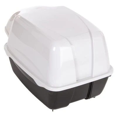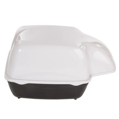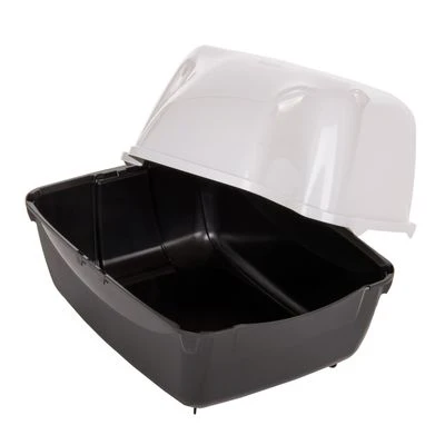 This innovative black and white litter tray has a waterproof hood and is particularly suitable for outside use. It has an extra-large entry and a deep tray, making it great for larger cats.