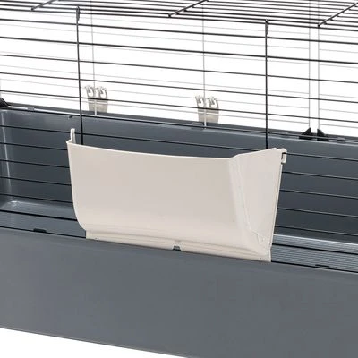 Ferplast Rabbit & Guinea Pig Cage 120 is a spacious cage for dwarf rabbits and guinea pigs. Delivery of the cage includes basic accessories such as a hay rack, a cup, a den and a non-drip bottle. There’s nothing that will go between you and your pet. The included hay/food rack hangs outside so it doesn’t take up extra space in the cage. To help you get to your pet easily, the Ferplast Rabbit 120 has a large metal door that opens up an entire side of the cage. The paint on the grating is water-based and cannot harm the animals.