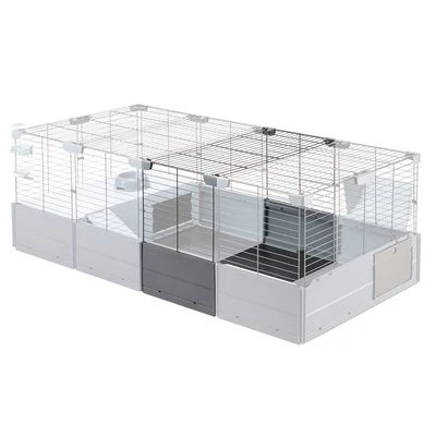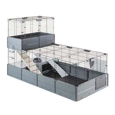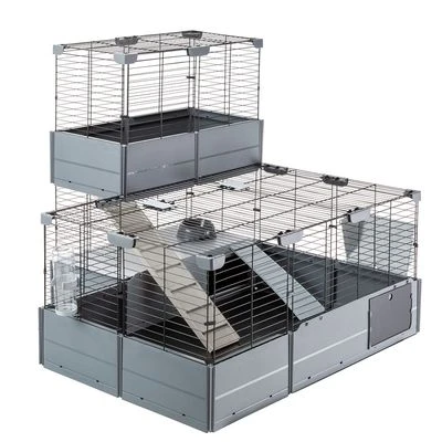 Expandable small animal cage with full equipment, for rabbits & guinea pigs, two-tier, spacious, comfortable, with safety lock, 100% recycled plastic, additional modules available