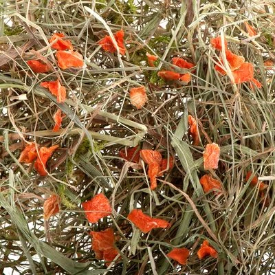Greenwoods Meadow Hay is a tasty, natural food for rabbits and other small pets. The mix of dried grasses and herbs provide your pet with important raw fibre. The hay mix is enriched with wild apples or dandelions or carrots, each of which provide important vitamins and minerals. It is a delicious supplement to your pet’s daily food.