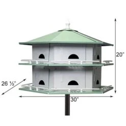 Offer birds of prey a safe and sturdy roost with the BestNest Premium Screech Owl or Kestrel House. Inviting these skillful hunters into your yard helps control rodent populations naturally, while allowing you to enjoy the beauty of different birds. This home is artfully designed to meet the needs of small owls or kestrels. The rectangular shape of the roost creates plenty of nesting space, with small openings on each corner of the base for drainage. The 3″ diameter entry allows these birds passage, while remaining protected from the elements with the sloped roof and significant overhang. An image of a screech owl clinging onto a branch is burnt into the front panel of the home, for added design on the piece. Ventilation holes near the top of the shelter provide temperature regulation, for the comfort and safety of the nestlings, while a unique thumbscrew at the base of the front panel keeps the home securely latched. Open this panel for nest checks, or to move the included sliding baffle. This wooden panel rests within grooves on the sides of the home, and can sit at the bottom of the roost to protect eggs and nestlings during maintenance. At the end of the season, or if you opt not to house owls, slide the panel upward and use the included wooden tabs to keep it in place, blocking the entry hole. Securely mount this unit to a post or tree by drilling through the back and top lip. The wooden body adds a natural charm to the piece, and its durable hardware and beautiful image create a lasting roost. Give birds of prey a nesting option in your yard with this Premium Screech Owl / Kestrel House.