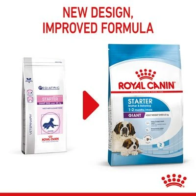 Royal Canin Giant Starter Mother & Babydog is suitable for growing giant breed dogs expected to weight over 45kg, ideal for weaning from mother’s milk during the first 2 months. This tailored nutrition is specially designed to meet the high energy needs of giant breeds at the end of pregnancy and during nursing. It has been developed to support healthy development in nursing puppies.