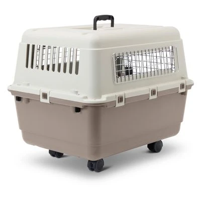 Transport box for dogs, ideal for flights and IATA compliant, with air vents to ensure circulation, with a security closure system and mounted on wheels for easy manoeuvring.