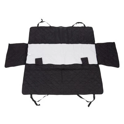 Quilted dog blanket for the car, protects upholstery, doors & side panels, large lying surface, with viewing window, seat anchors, non-slip underside, practical zip system, colour: black