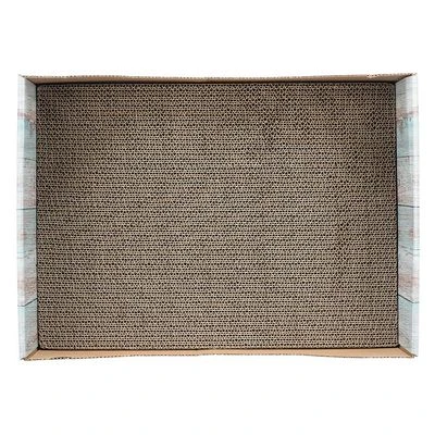 Beautiful scratching bed made of robust corrugated card board for cats, large scratching surface for claw care, raised edge in sanded real wood look, with stimulating catnip, size: L 45 x W 33 x H 12 cm