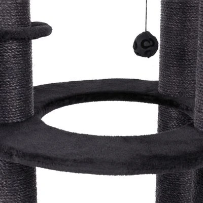 The medium high, sturdy cat tree with 12cm thick sisal pillars distinguishes itself from other cat trees through the use of a dark colourway and contrasting materials. It has four padded platforms covered in a mixture of plush and a velour-like fabric with a silky pattern. The base plate has been covered in a rustle foil, underneath the fabric, which your cat will find particularly interesting, as even the lightest touch can produce exciting rustle noises! The deep, round hammock is padded, and lined with warm plush fabric, and is the perfect hide-away spot for your cat to have forty winks.