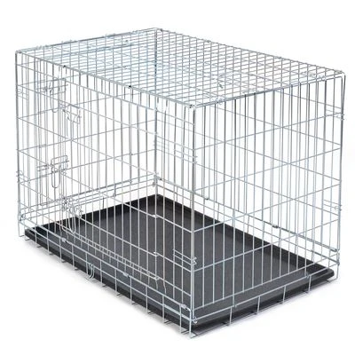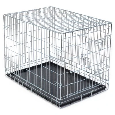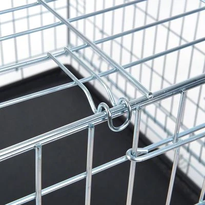 Mesh crate made from zinc coated metal, ideal for dogs and with two doors and a carry handle. It is collapsible and is the ideal space in which your dog can relax in any situation.