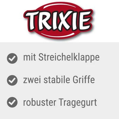 The Trixie Mini-Capri transport box is made of robust, easy-care plastic and offers easy access to your pet thanks to the opening at the top. An integrated petting flap allows it to be opened safely on the way or in the waiting room when you want to calm your furry nose. Thanks to the many openings in the lid of the flap, your pet is always sufficiently supplied with air during transport. The small animal box can be carried either by the shoulder strap or by the two handles.