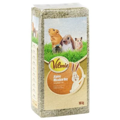 Hay is an important staple food for your small pet and Vilmie Mountain Meadow Hay should be part of any rabbit or guinea pig’s diet. It contains plenty of healthy, leafy plants and herbs which are packed full of vital nutrients. Fresh hay has a high fibre content which helps to keep your small pet’s digestive system healthy. It also has an abrasive effect on your pet’s teeth and helps to keep them short. Your pet should always have plenty of hay available.