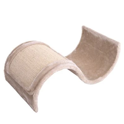 Wave-shaped scratching pad and nap area, with a soft plush covering and sturdy natural sisal scratch mat. A great place for your cat to relax, play and sharpen its claws. Colour: cream.